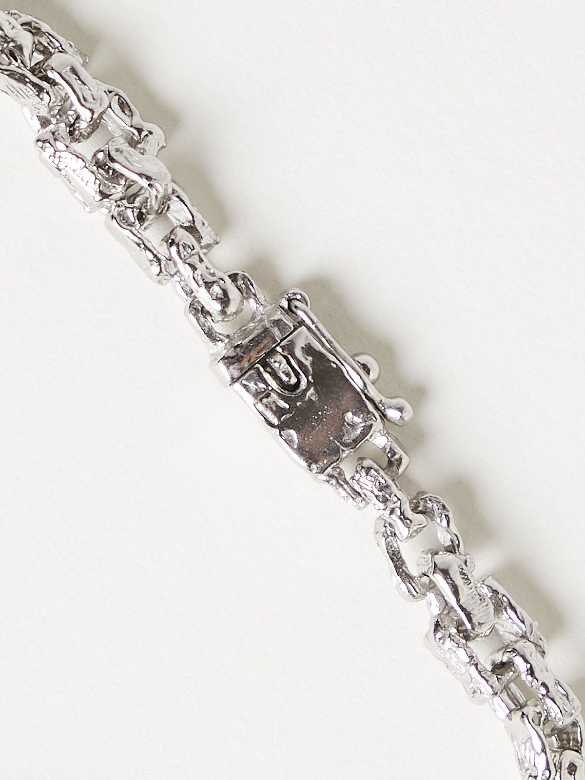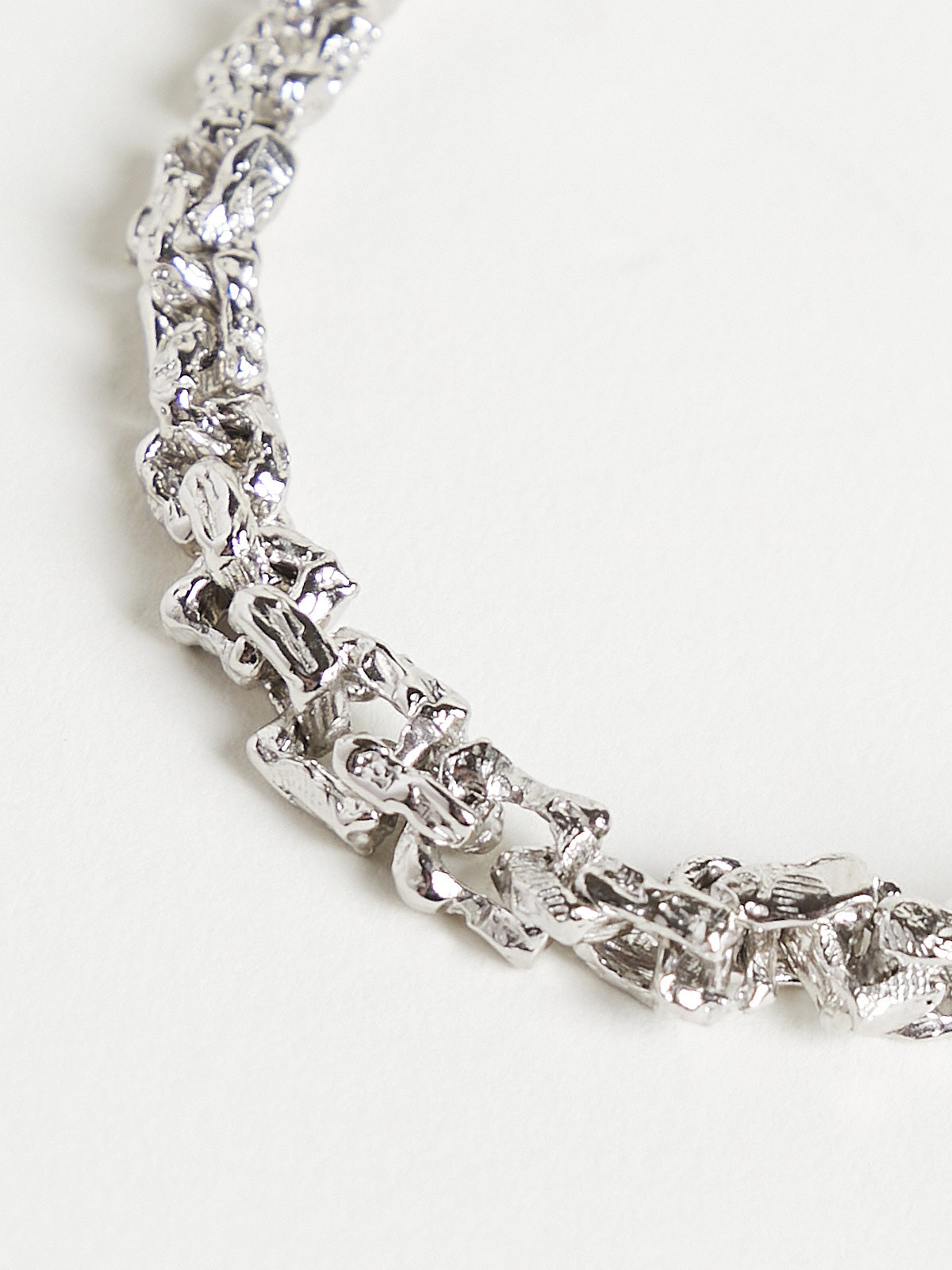 Handcrafted irregular chain bracelet made from platinum-plated recycled sterling silver. Features a box clasp.