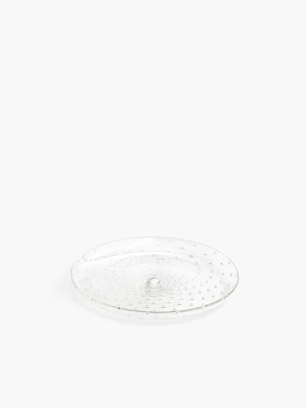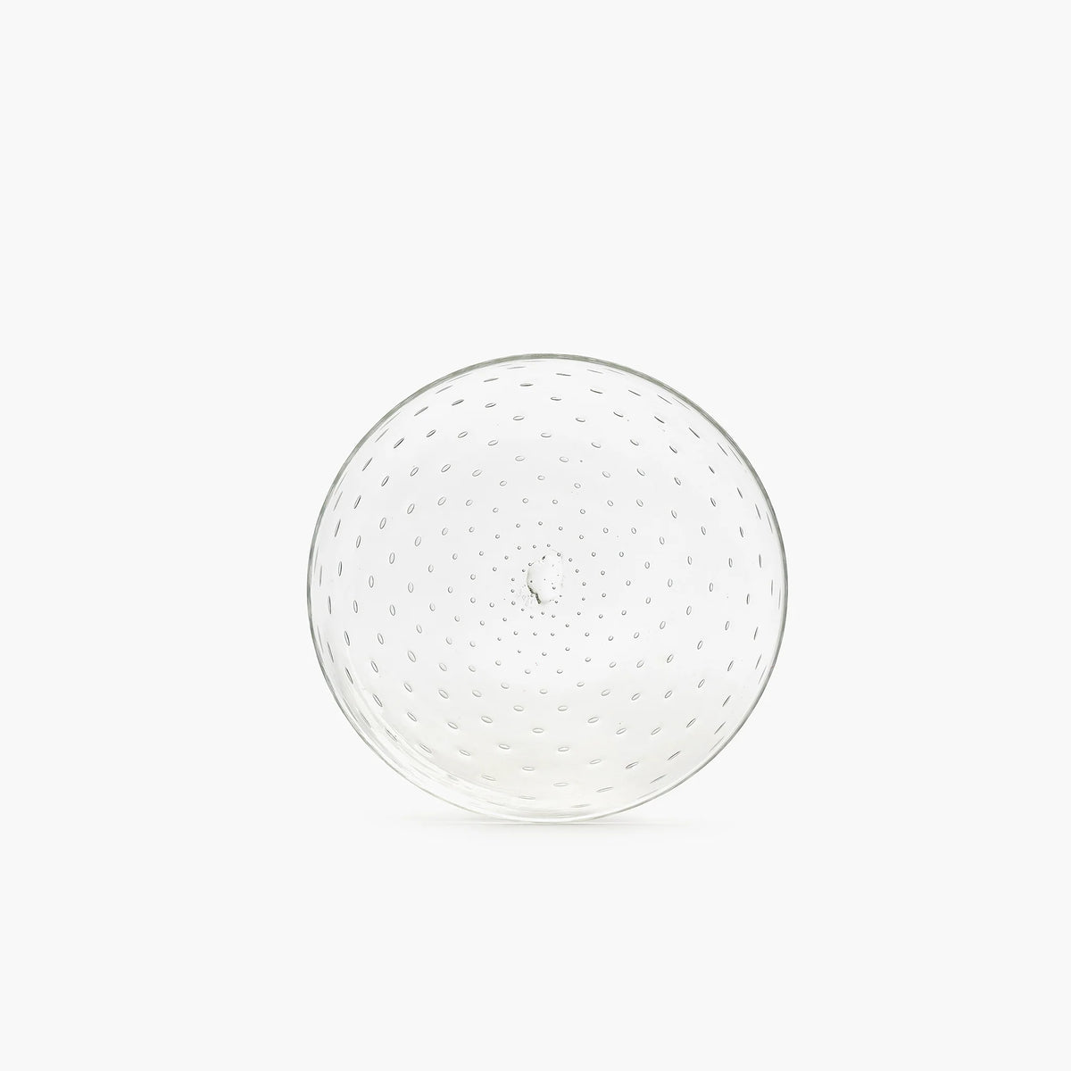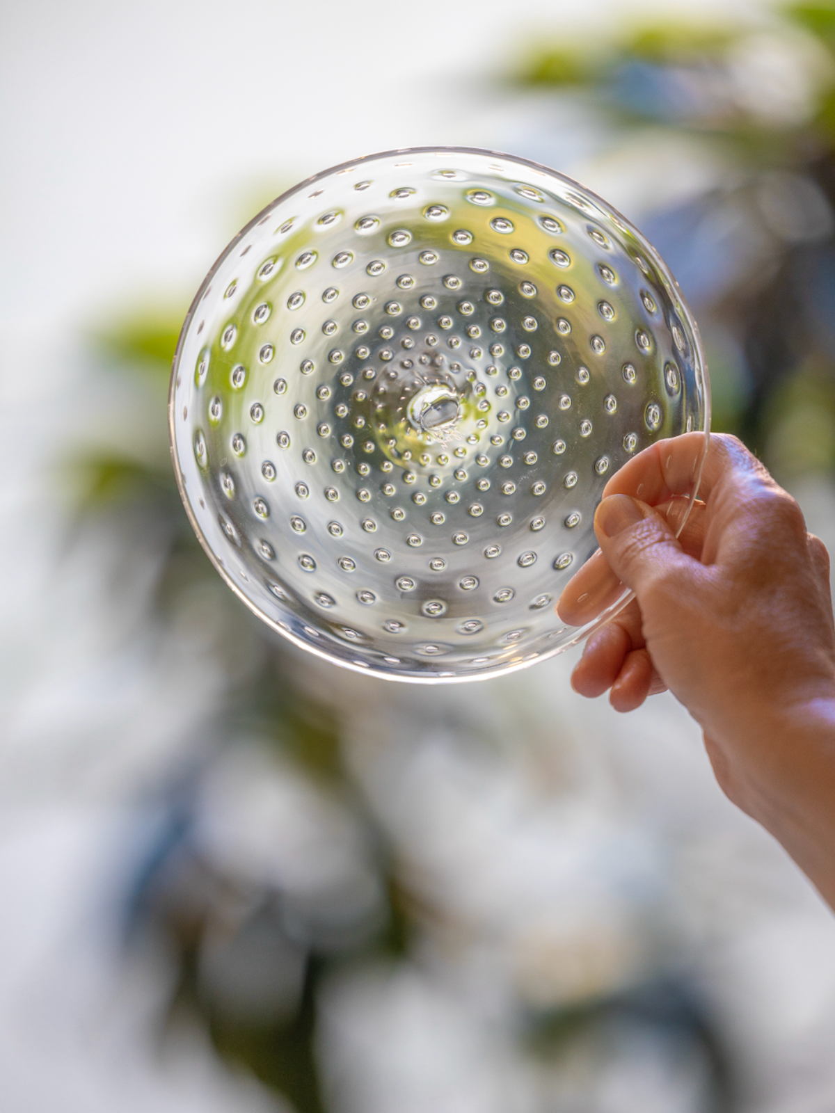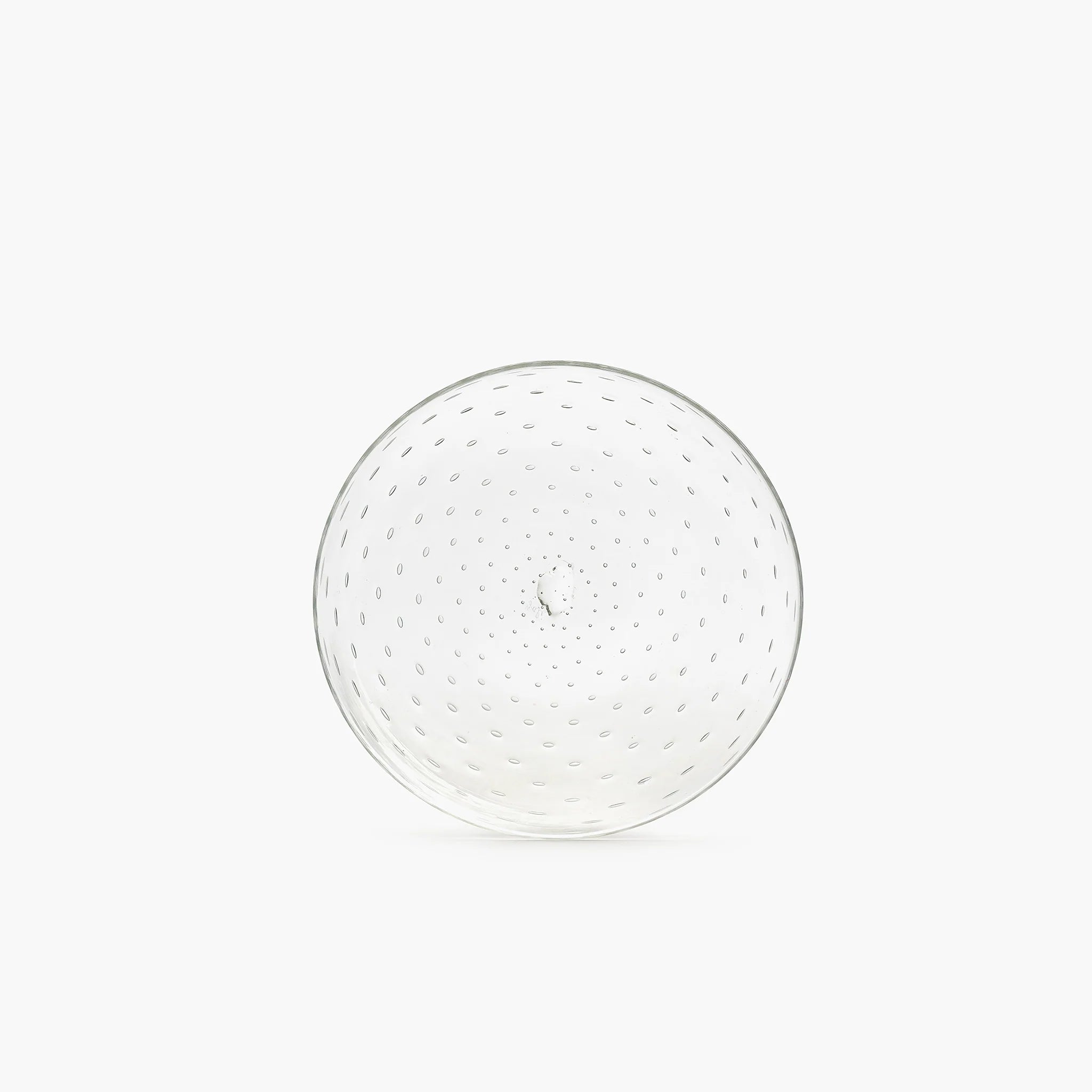 Mouthblown plate with a raindrop pattern in clear glass. Handmade in Murano.