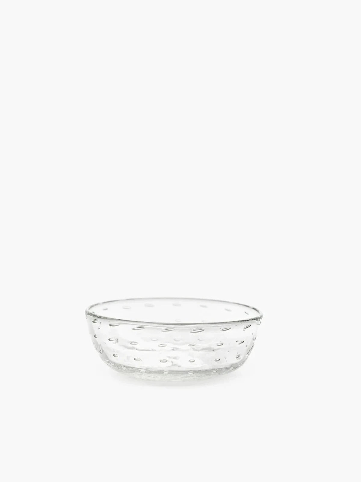 Mouthblown small bowl with a raindrop pattern in clear glass. Handmade in Murano.